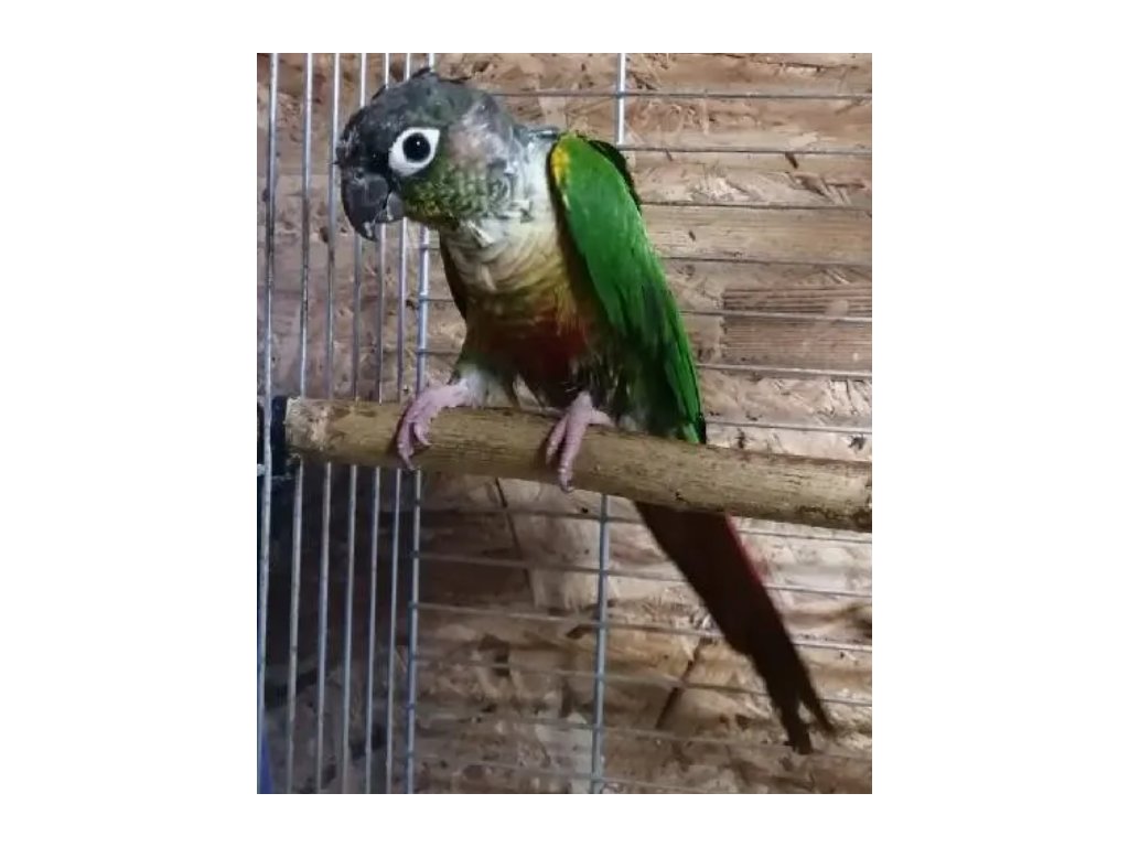 Poslední majitelka zachránila cca roční pyruru z nevyhovujících podmínek. Mladá pyrurka byla celoročně venku ve voliéře. Už zde si trhala peří. Byla krmená převážně slunečnicemi. Zřejmě měl špatné zkušenosti s lidmi, protože se hodně škubal. Nová majitelka pyrurku odvezla k sobě domů, začala ho krmit směsí zrnin pro pyrury a dostával čerstvé ovoce a zeleninu. Ale velmi se bál lidí a všeho. Jeho stav se nezlepšil a raději byl zalezlý celý den v budce. Po dvou měsících to majitelka vzdala a přivezla ho do Laguny, aby se zde skamarádil a přišel na jiné myšlenky. Malý Bůčo přijel úplně oškubaný a vylekaný. Většinu léta strávil ve venkovní voliéře s dalšími dvěma pyrurkami. A než nastal podzim, z oškubaného chudáčka se vyloupl krásný zapeřený papoušek. Je vidět, že mu kamarádství dalších pyrur udělalo dobře.